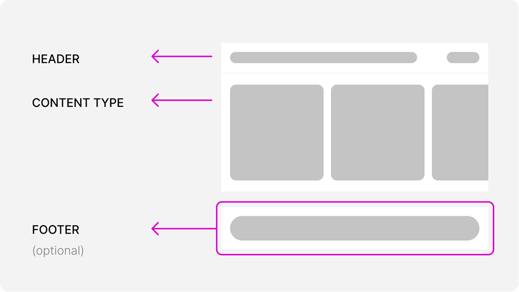 The audit took the form of screenshots of every unit within the Gaming feed and organizing them based on their smallest component: header, content and footer
