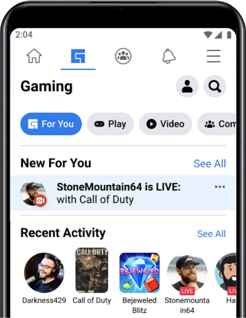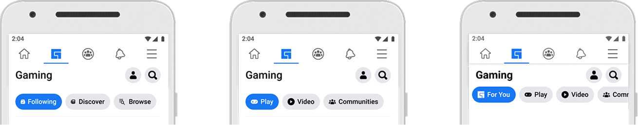 Gaming tab lives within the Facebook app. Within the tab itself are a number of content areas which users can explore. Our problem starts with the data point that our users are not utilizing the navigation.